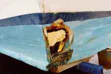 Figure 4 is the view of the stern (back) of a vintage, wooden, cabin cruiser that sank at its mooring, despite the fact that the bilge pump was working at capacity. Apparently, the insured unsuccessfully repaired a hole in the stern with hardware store quality Styrofoam spray-on insulation.
