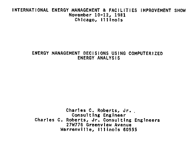 ENERGY MANAGEMENT DECISIONS USING COMPUTERIZED ENERGY ANALYSIS (IEMFIS 1981)