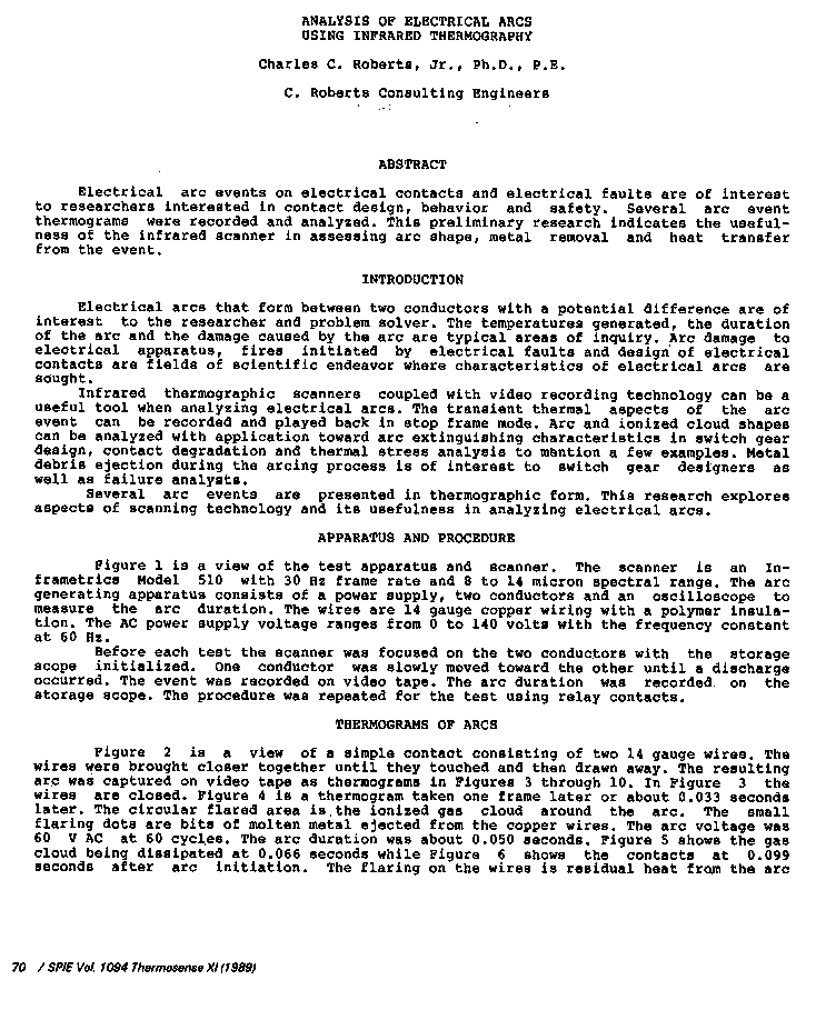 ANALYSIS OF ELECTRICAL ARCS USING INFRARED THERMOGRAPHY (SPIE 1989)