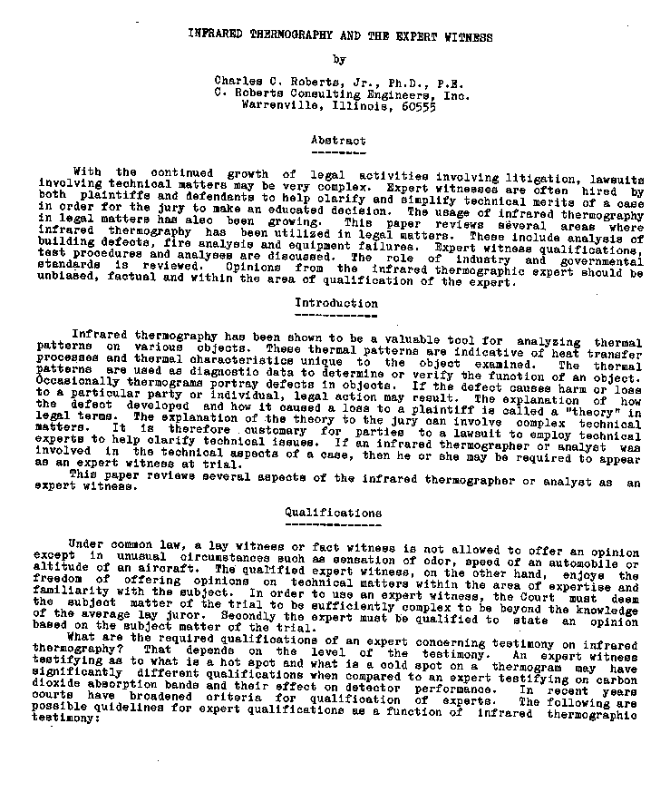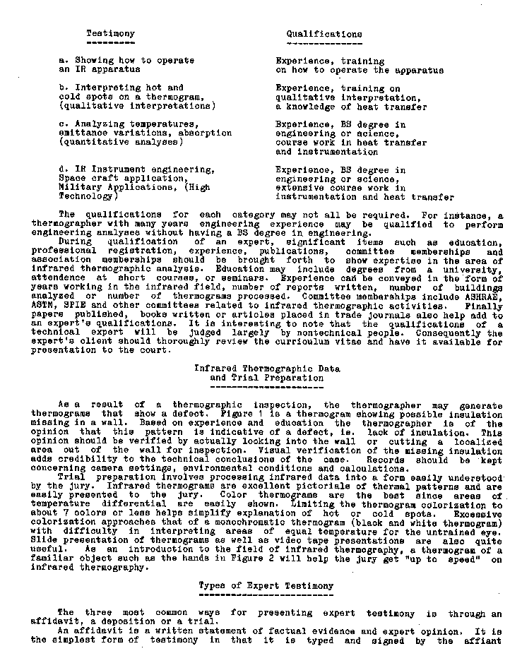 INFRARED THERMOGRAPHY AND THE EXPERT WITNESS (SPIE 1984)