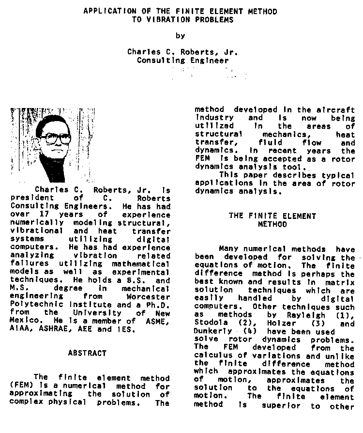 APPLICATION OF THE FINITE ELEMENT METHOD TO VIBRATION PROBLEMS (VIBINST 1981)