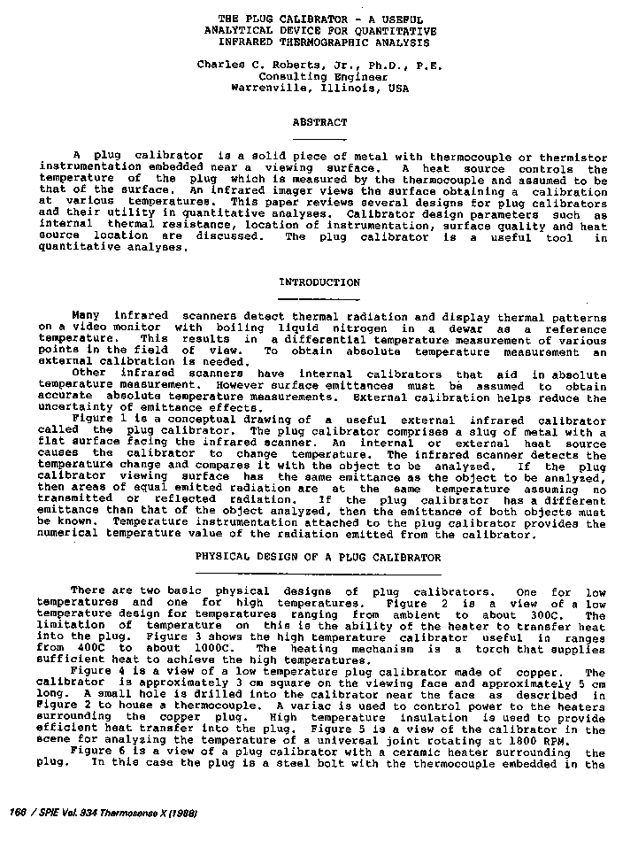 THE PLUG CALIBRATOR - A USEFUL ANALYTICAL DEVICE FOR QUANTITATIVE INFRARED THERMOGRAPHIC ANALYSIS (SPIE 1988)