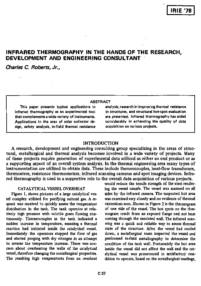 INFRARED THERMOGRAPHY IN THE HANDS OF THE RESEARCH, DEVELOPMENT AND ENGINEERING CONSULTANT (IRIE 1978)