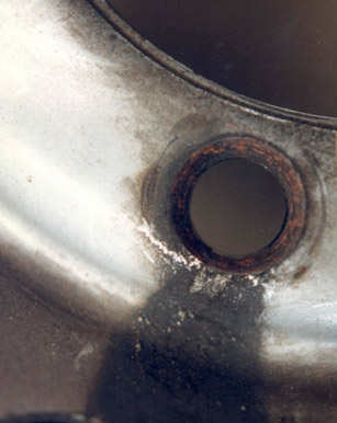 wheel stud, resulting in fretting of the wheel bolt hole area (black
