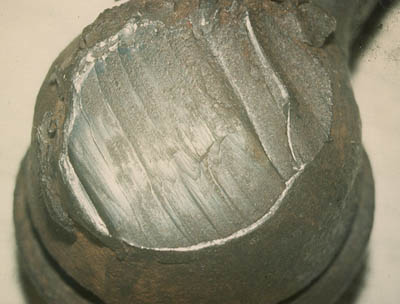 the bolt had fractured. A close-up of the fracture surface is shown