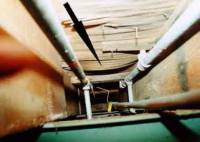 Figure 5 is a view of joists and flooring near a leak in a copper