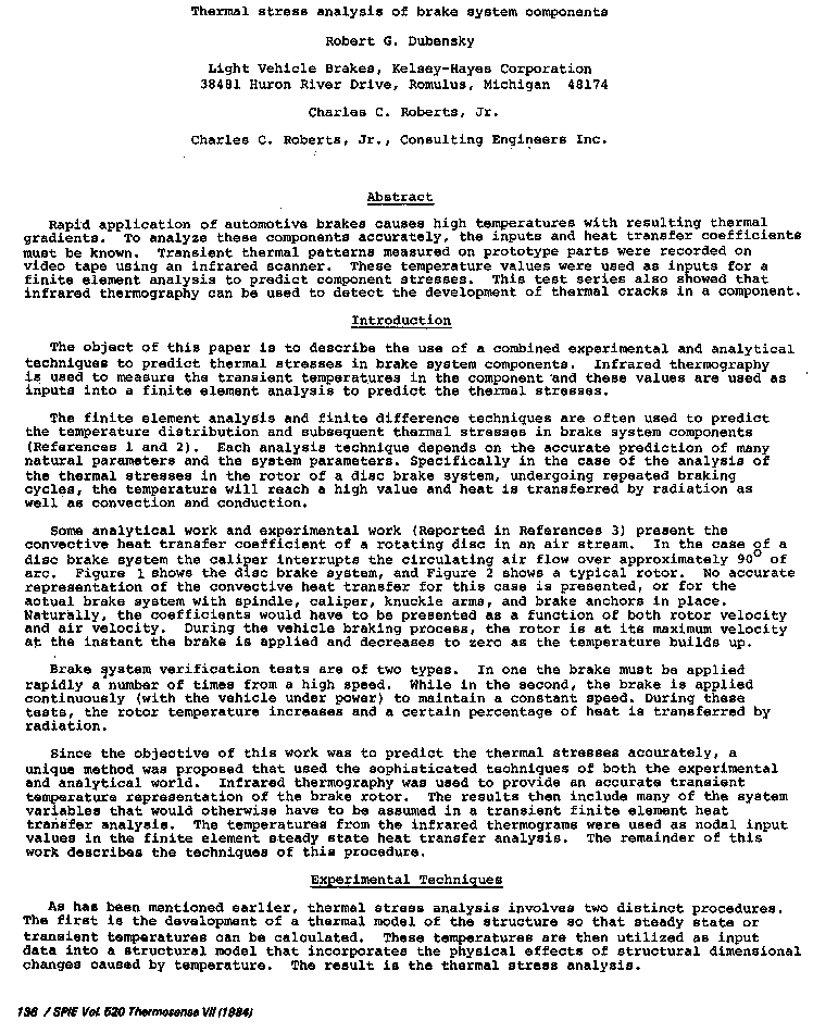 THERMAL STRESS ANALYSIS OF BRAKE SYSTEM COMPONENTS (SPIE 1984)