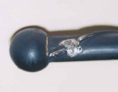 Figure 2 is a view of the radio antenna tip showing melted metal,
