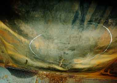shows an internal view of the buckling of the tank as