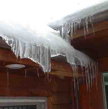 of the ice can cause gutter and eave damage. Normal drainage is blocked and can