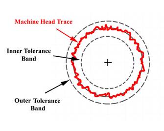 tolerance to one side. This is a typical accuracy error. The machine head is