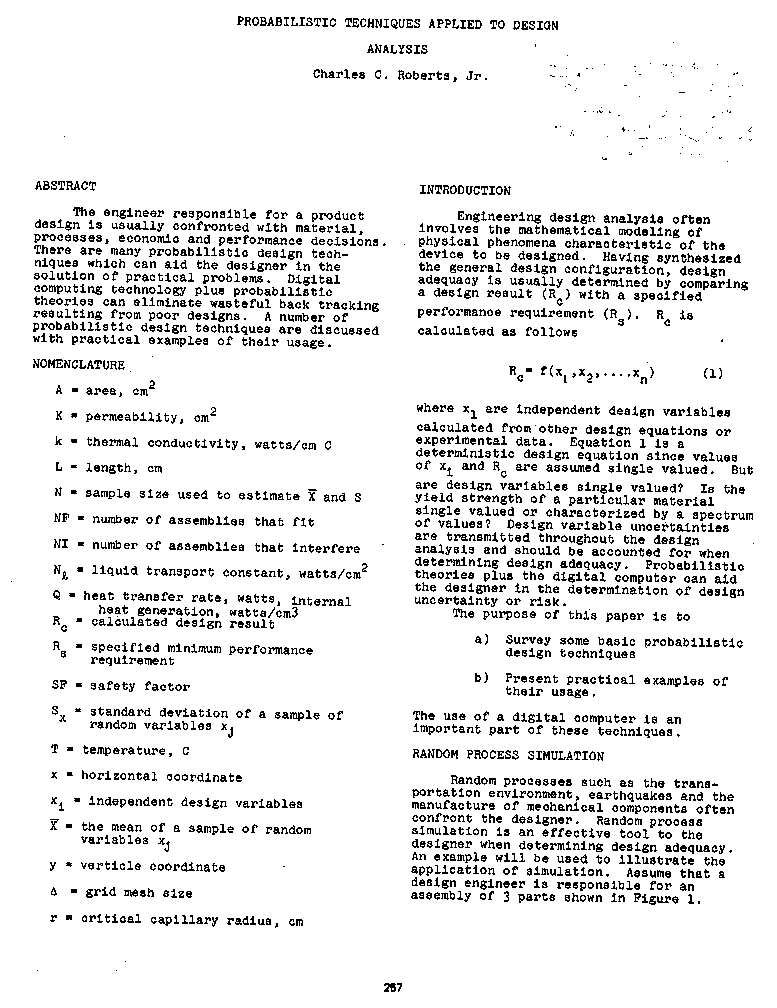 PROBABILISTIC TECHNIQUES APPLIED TO DESIGN ANALYSIS (DTTC 1974)