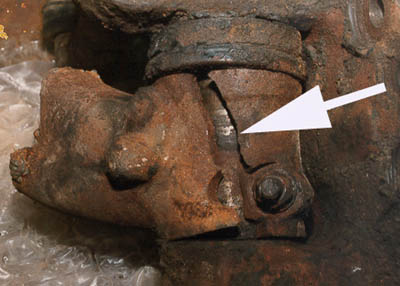 Figure 7 is a close-up of a crack in the king pin housing. A truck