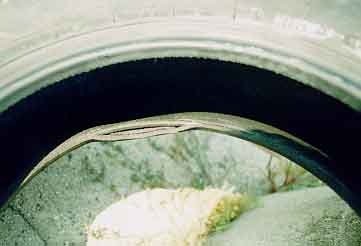 was re-inflated, the bulge caused by the bead failure was apparent.