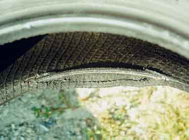 resulted in tire deflation. The bulge in the tire, caused by the bead